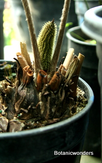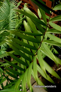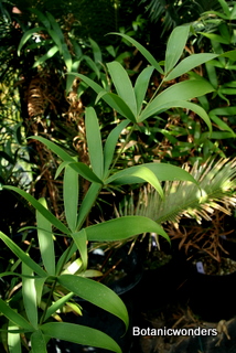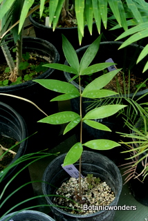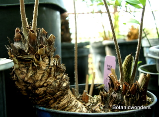 Ceratozamia hildae is arguably the most unique species of the genus Ceratozamia, and of cycads in general. It is often referred as the "bamboo cycad". Its upright stems with "multi-grouped" leaflets look very much like a bamboo plant. C. hildae originates from the San Luis Potosi and Queretaro regions of Mexico. It grows in Oak Forests, mostly in part sun and shade. Leaves grow upright to 6' feet tall (shorter in sunny locations) with multiple clusters of leaflets. Usually these clusters are in groups of three. Stems are short, usually at ground level, and eventually suckering at the base. New leaves can emerge in light green or bronze coloration. Leaf petioles have few to many spines. Cones emerge in early spring.