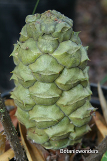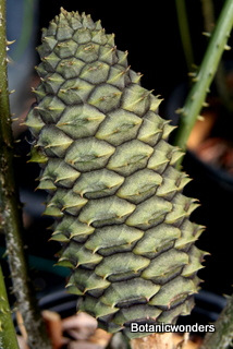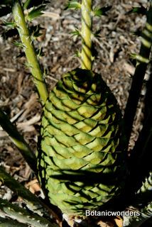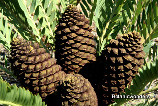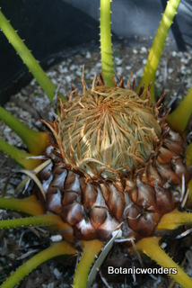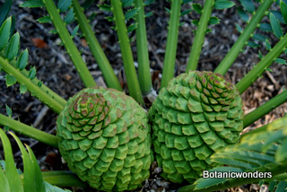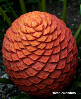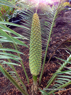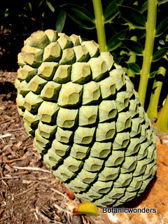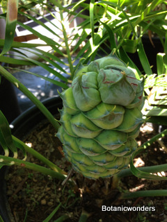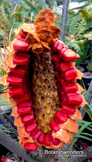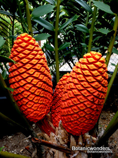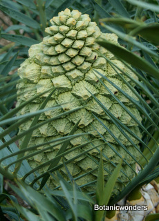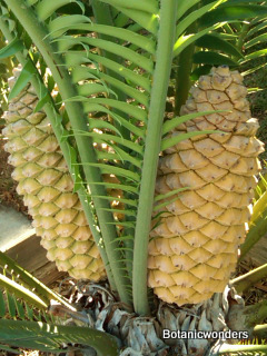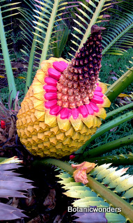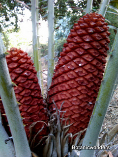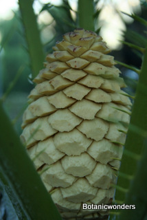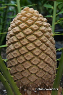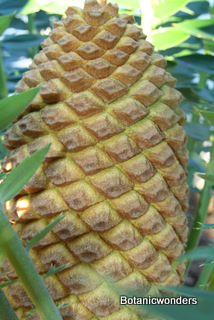 This page is dedicated to the beauty and diversity of Cycad cones. Cycads are gymnosperms which puts them in the same plant group which includes pine trees. All cycads are dioeceous, which means plants are either male of female, unlike many flowering plants which have booth sex parts on the same flower. They have an ancient lineage, showing up in the fossil record about 350 million years ago.