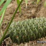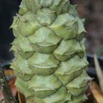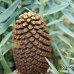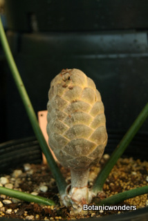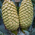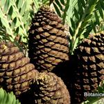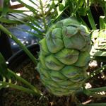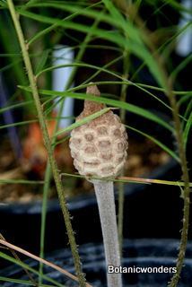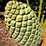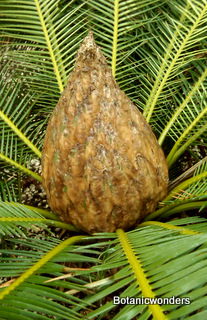 Cycad cones can vary in size from 1-2 inches to 30"plus in size. Female cones can contain several hundred seeds weighing over 75 pounds! Most female cones are wider and rounder than their male counterpart which is narrower and more elongated.