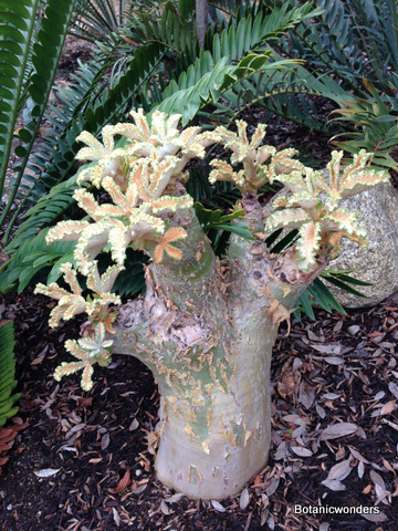 Cyphostemma juttae and Cyphostemma currorii are both favorites of succulent collectors. The first time I saw Cyphostemma juttae I knew this was a plant I had to have! The fat trunk, peeling bark, and large thick leaves are as exotic as it gets!