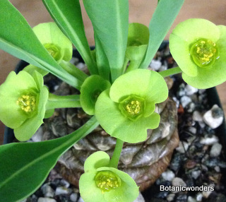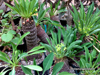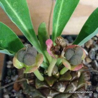 Euphorbia bupleurifolia was the second Euphorbia I ever purchased, Euphorbia obesa being the first. It is by far my favorite of all Euphorbia species. It is a found in a large area in South Africa, from eastern Cape Province through Transkei and Natal. It is a small growing plant reaching about 12-16 inches in height, sometimes solitary and other times branching from the base. Euphorbia bupleurifolia is dioecious,meaning that individual plants have either male or female flowers only, not both. However this species is know to change sex! I personally have had plants change sex from female to male. It has also been reported that some individuals have also had both male and female flowers on the same plant! This is by far my best selling Euphorbia. It is truly a unique and fascinating plant.