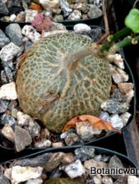 Gerrardanthus macrorrhizus is one of the best caudiciforms of the cucurbit family I have personally grown. Gerrandanthus macrorrhizus is indigenous to South Africa, where it can grow to an extremely large size. The caudex grows above ground where it can two to three feet in diameter. I have seen plants planted in raised beds that are the size of a car tire! The vines will totally cover the caudex. My plants produce vines several feet in length. During winter here in So. California, my plants go dormant losing many of its leaves. The vines will stay green and produce new leaves in spring. Plants of this species are dioecious, meaning that plants have either male or female flowers only. You will need both male and female plants to produce seed. This is one of my favorite species to grow.