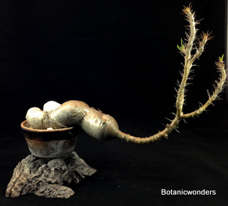 Best way to propagate Pachypodiums is by seed. Put seed down in 3 inch deep trays or pots, with well drained soil. Bury seeds about 1/8 inch deep. Keep damp until germination. Seeds should germinate in 3 to 12 days. I wait for at least a year before transplanting into individual pots. Growing from seed is fun and easy. Pachypodiums make stunning container specimens. Stage them as succulent bonsai for a great look!