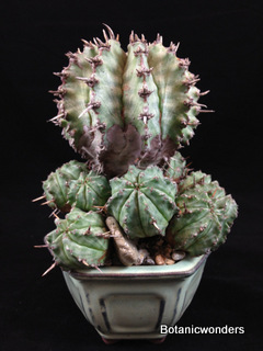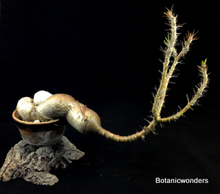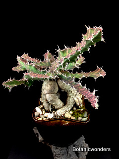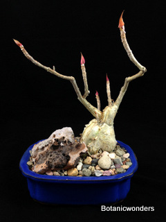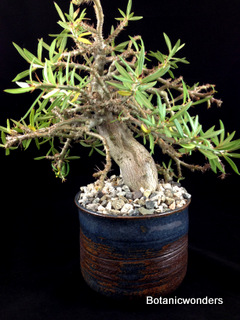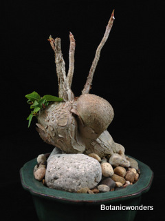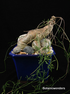 In this section we will be going over the care of bonsai, specifically succulent bonsai. True bonsai has very specific parameters. When creating succulent bonsai it is difficult to follow traditional rules. With succulent bonsai we are still trying to capture the look of mature plants from the wild, in a container, and a smaller version of that plant. Traditional bonsai enthusiasts would cringe that we would dare call these creations bonsai! There have been attempts to come up with a new name for these creations, however none have caught on as of yet. In any case this is a art form that has its roots from traditional bonsai, so for now we will refer to them as succulent bonsai. Growing succulent bonsai is very rewarding. Many succulents exhibit features of mature old specimens at a young age. As with all bonsai it is amazing that these plants can live in such a small container with so little soil. This is the main factor in the "dwarfing" of these spectacular plants.