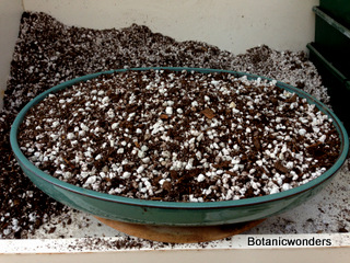 Step two: Next fill the container with your soil mix. As you can see we used a well draining mix. Mound the soil to avoid a "flat look".